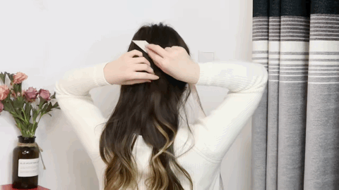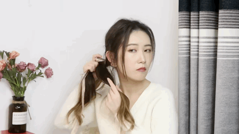 最关键的一步来了,刘海一定不能贴头皮,不然会有一种土味感,可以借助卷发棒做个小造型,不要太韩风!
