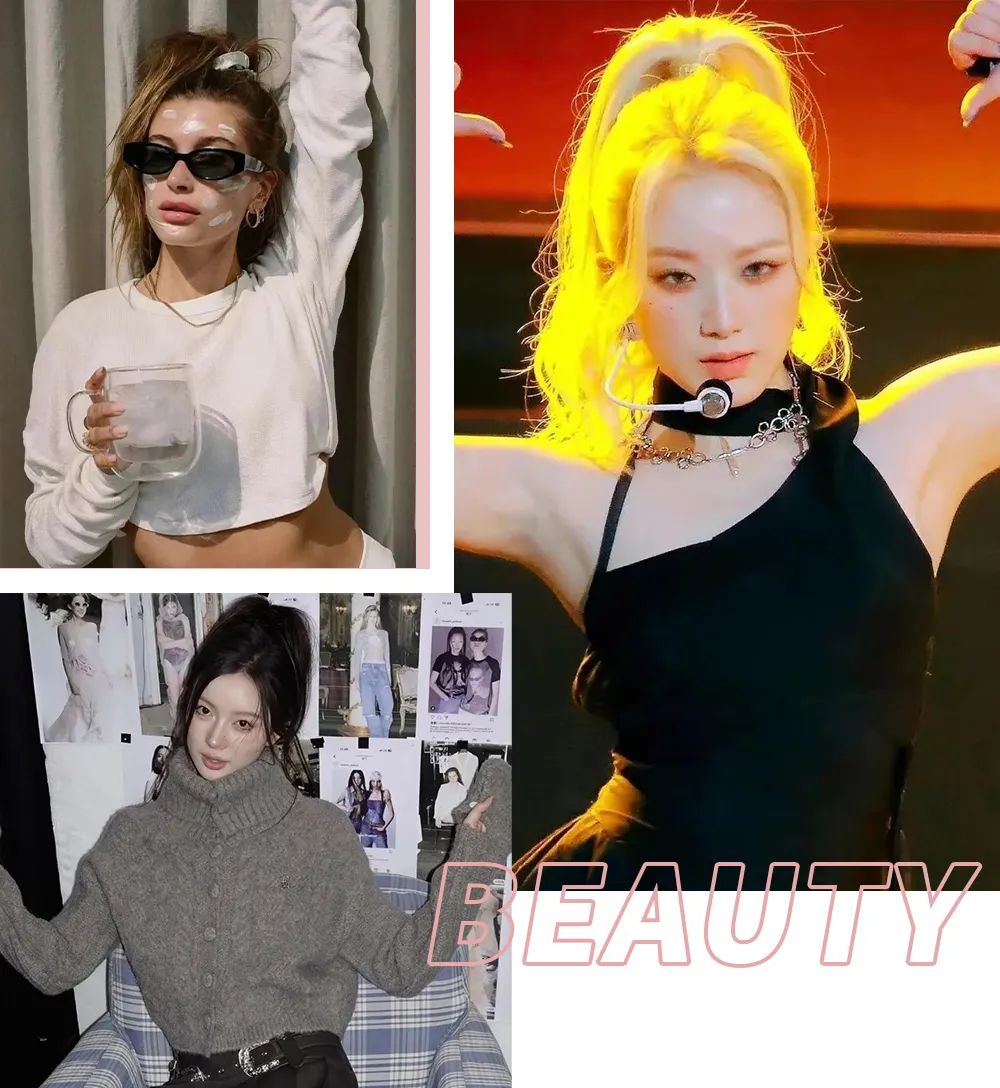 另外,扎马尾不要太过于死板,比起用梳子梳得板板正正,倒不如用手抓出无纹理的随意感,不经意的美感就出来了。