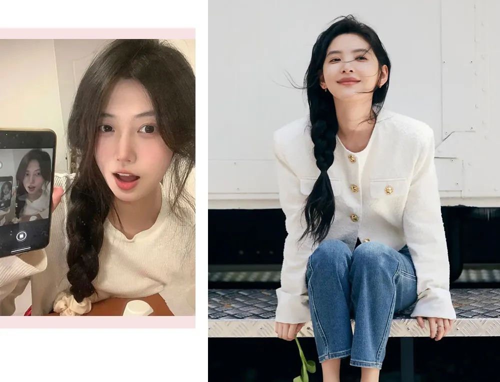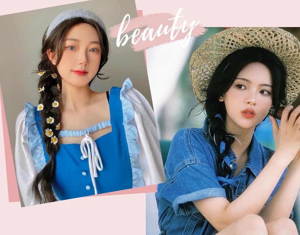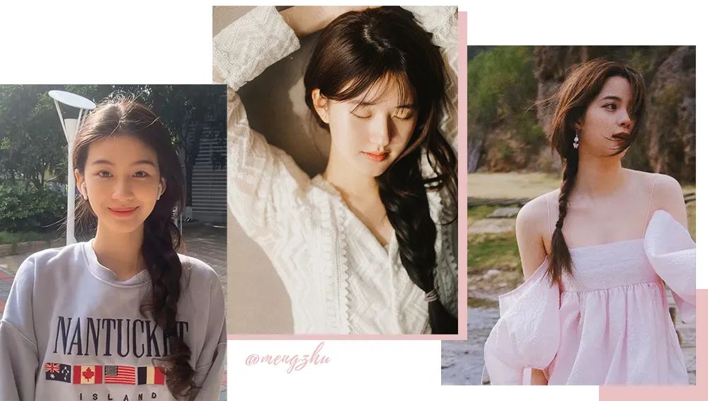 春夏披头散发真的太热了! 所以像这种编发就很实用了,尤其是这种侧编发,少女的调调,夏天配个小裙子啥,不要太清纯活力!