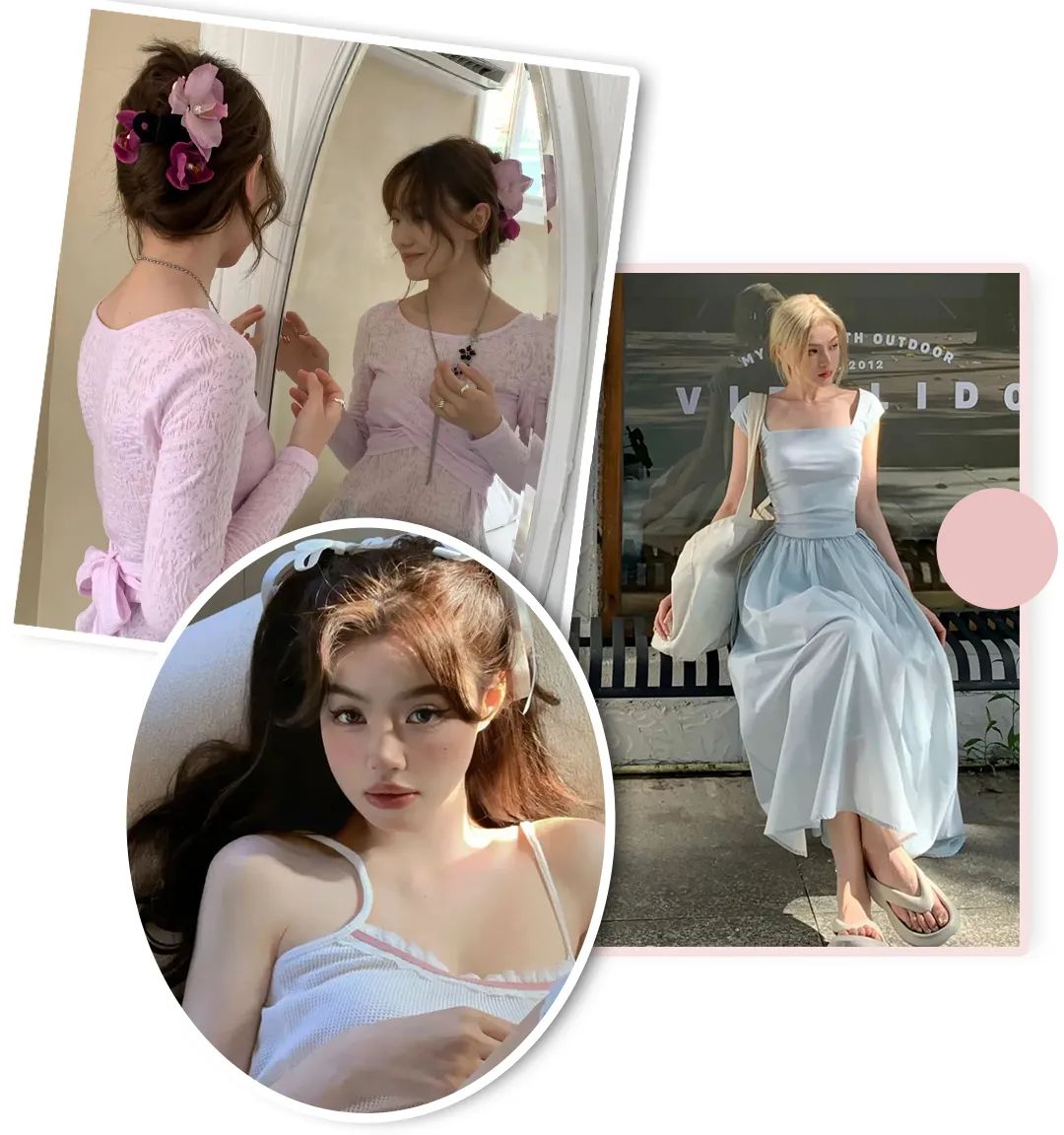 可以通过小配饰来增加甜美感,比如一款简单的蕾丝飘带,就足以把纯欲风拿捏住啦~
