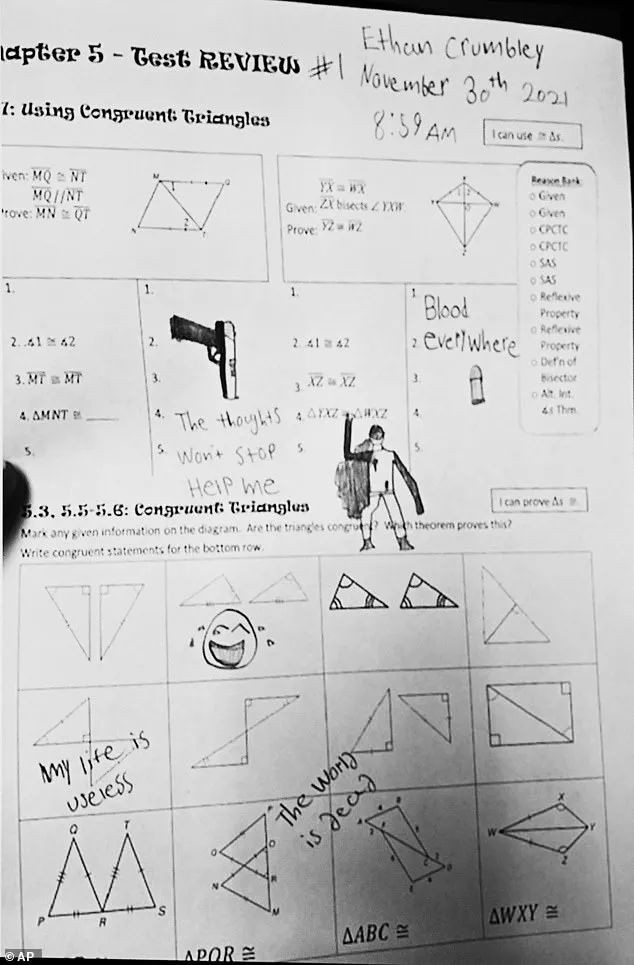 事发在2021年11月30日,在密歇根州底特律远郊的牛津高中,15岁的高二学生伊森·克鲁布利在校园中开枪,打死了4名同学,另外还有7人受伤,包括一名老师。