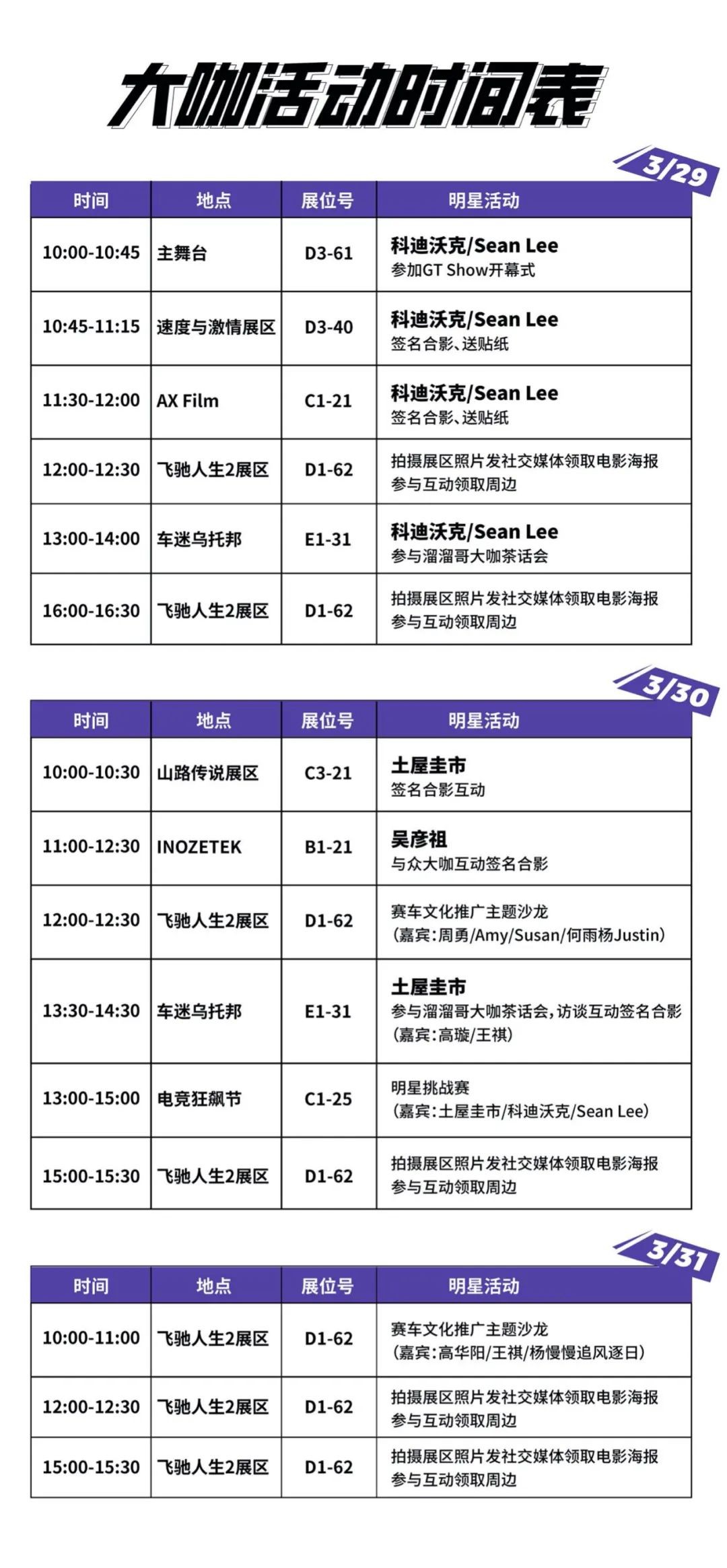 溜溜哥:改装大玩家 李宏声:北美玩车传奇人物 科迪•沃克:Fuel Fest创始人 速度与激情主题区将迎来科迪•沃克与李宏声。届时,他们将与广大车迷签名、合影、送贴纸,并进行近距离互动,分享自己的玩车心得和与保罗•沃克的深厚情谊。