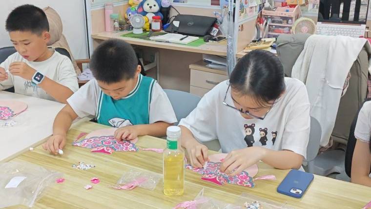 动手实践环节 图案选择:提供经典云肩模板供参考,也鼓励孩子在理解传统纹样的基础上进行简化或创新,激发想象力。 精细操作训练:通过精准粘贴珍珠,有效锻炼孩子的手眼协调能力、专注力与耐心,让美育与成长同步发生。 点睛之笔:引导孩子运用红珠作花心、米珠填空隙等细节处理,提升整体画面的表现力与完成度。 三六六社会实践始终致力于打造“可触摸的文化课堂”。此次云肩珍珠贴画活动,不仅是一次手工体验,更是一场沉浸式的传统文化启蒙之旅。让孩子在玩中学、在做中悟,于一粒粒珍珠的排列组合中,悄然种下文化自信的种子。 更多活动详情咨询:130-5280-5152